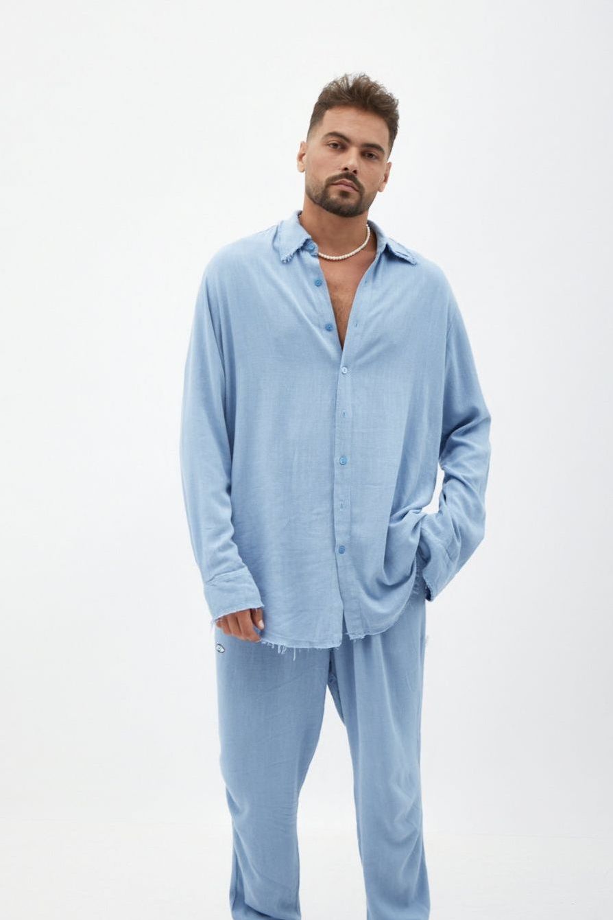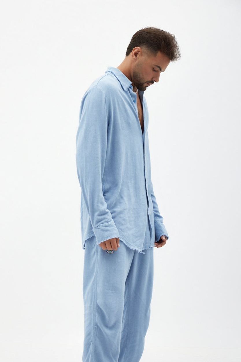 SOFT Linen Button-Up Shirt – Blue