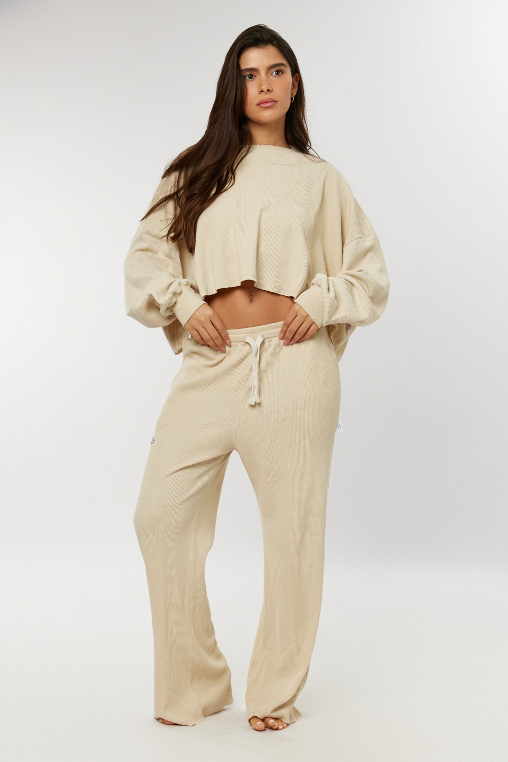 Wide Leg Trousers Made of 100% Cotton Pique Fabric