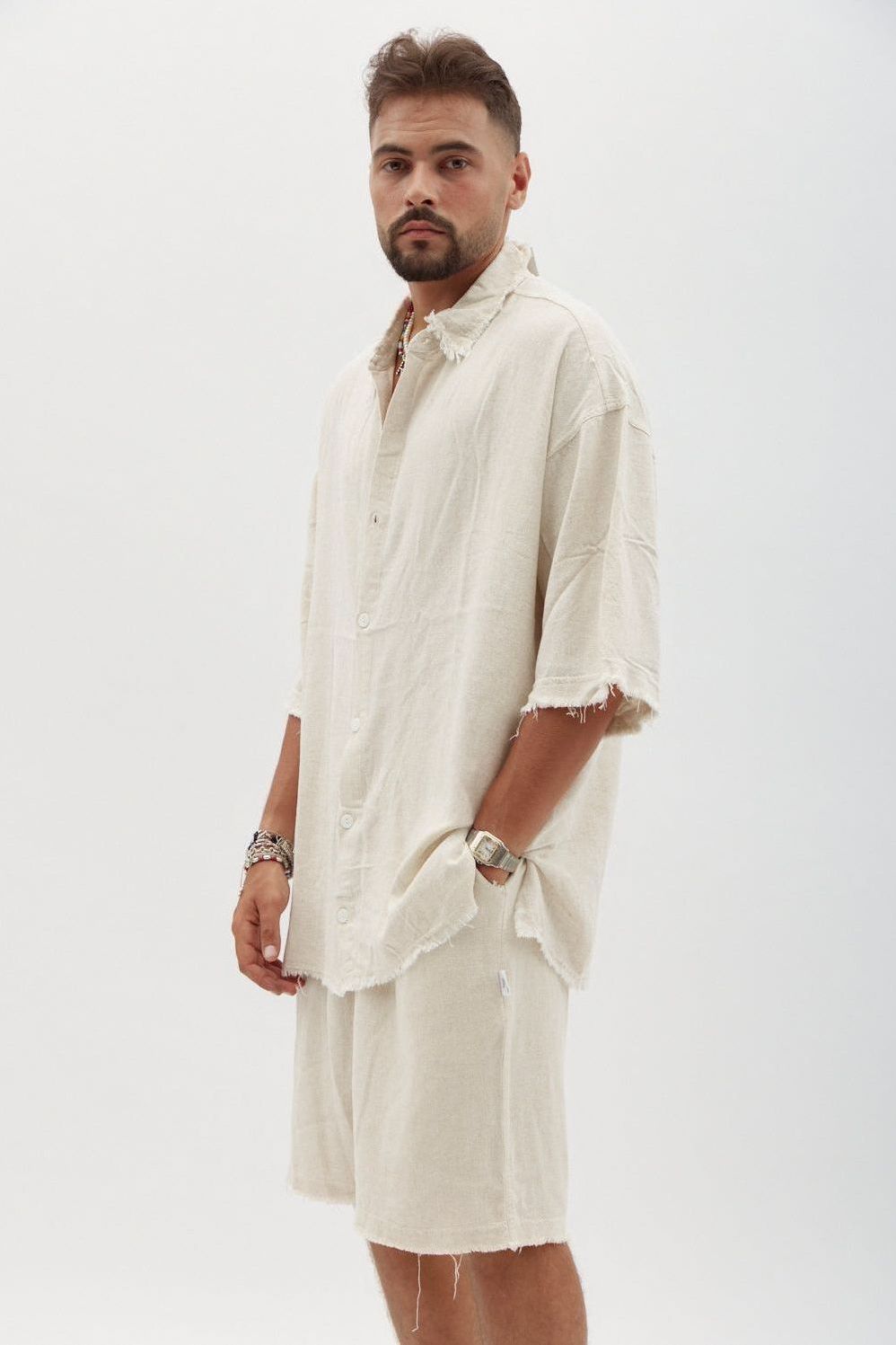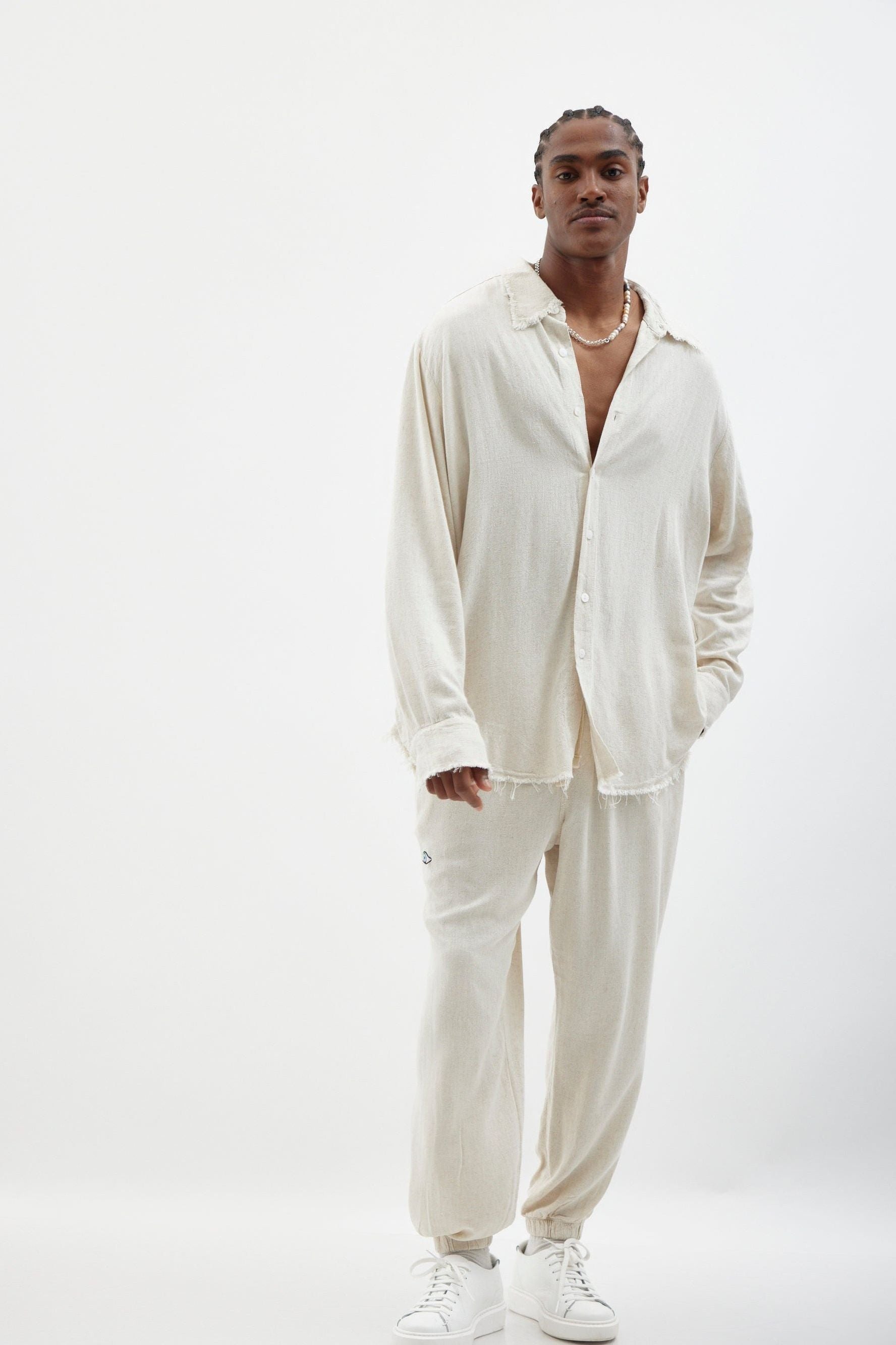 SOFT Linen Button-Up Shirt – Melange Stone