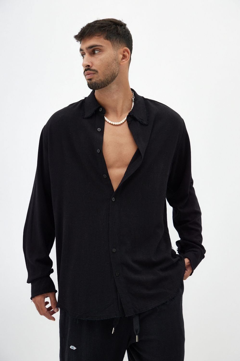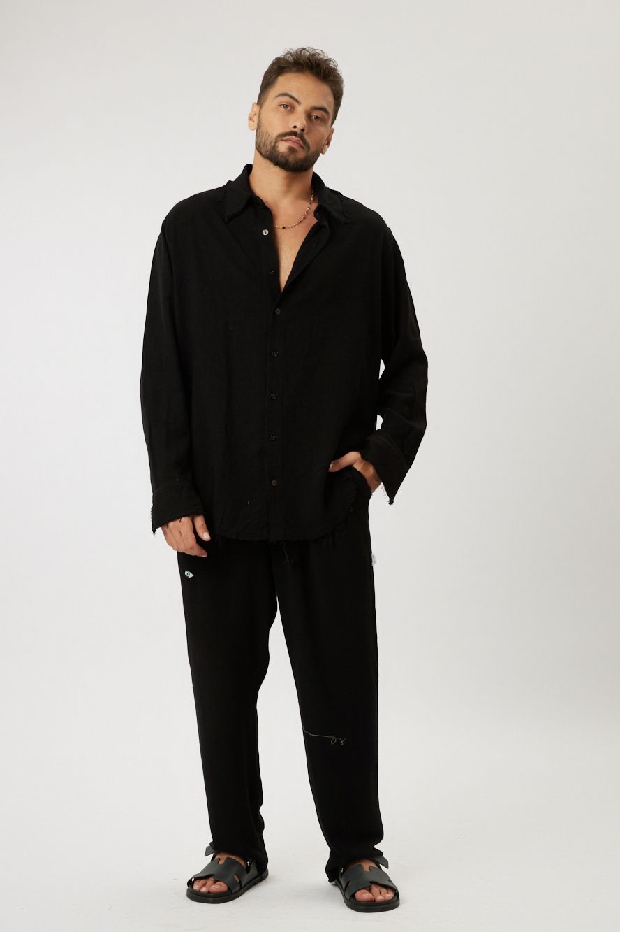 SOFT Linen Button-Up Shirt – Black