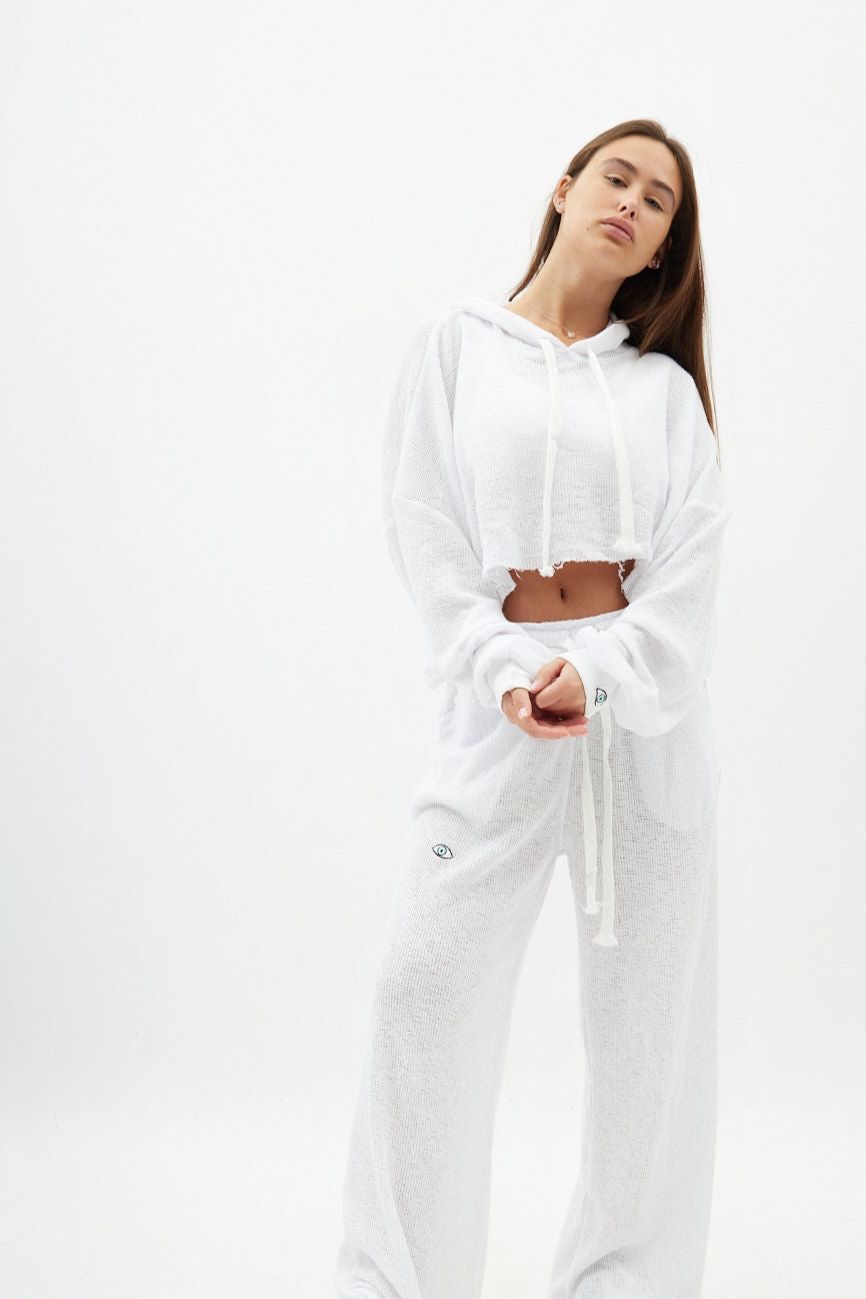 Fine Knit Flare Pants – White