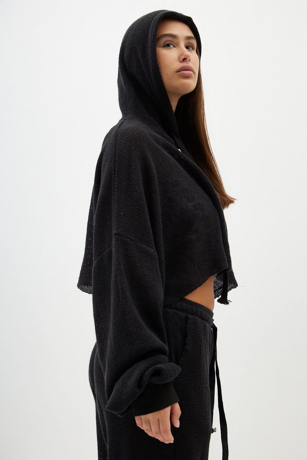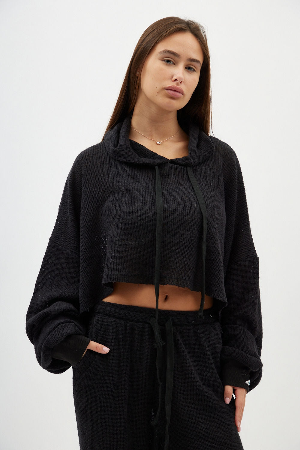 Fine Knit Crop Top – Black