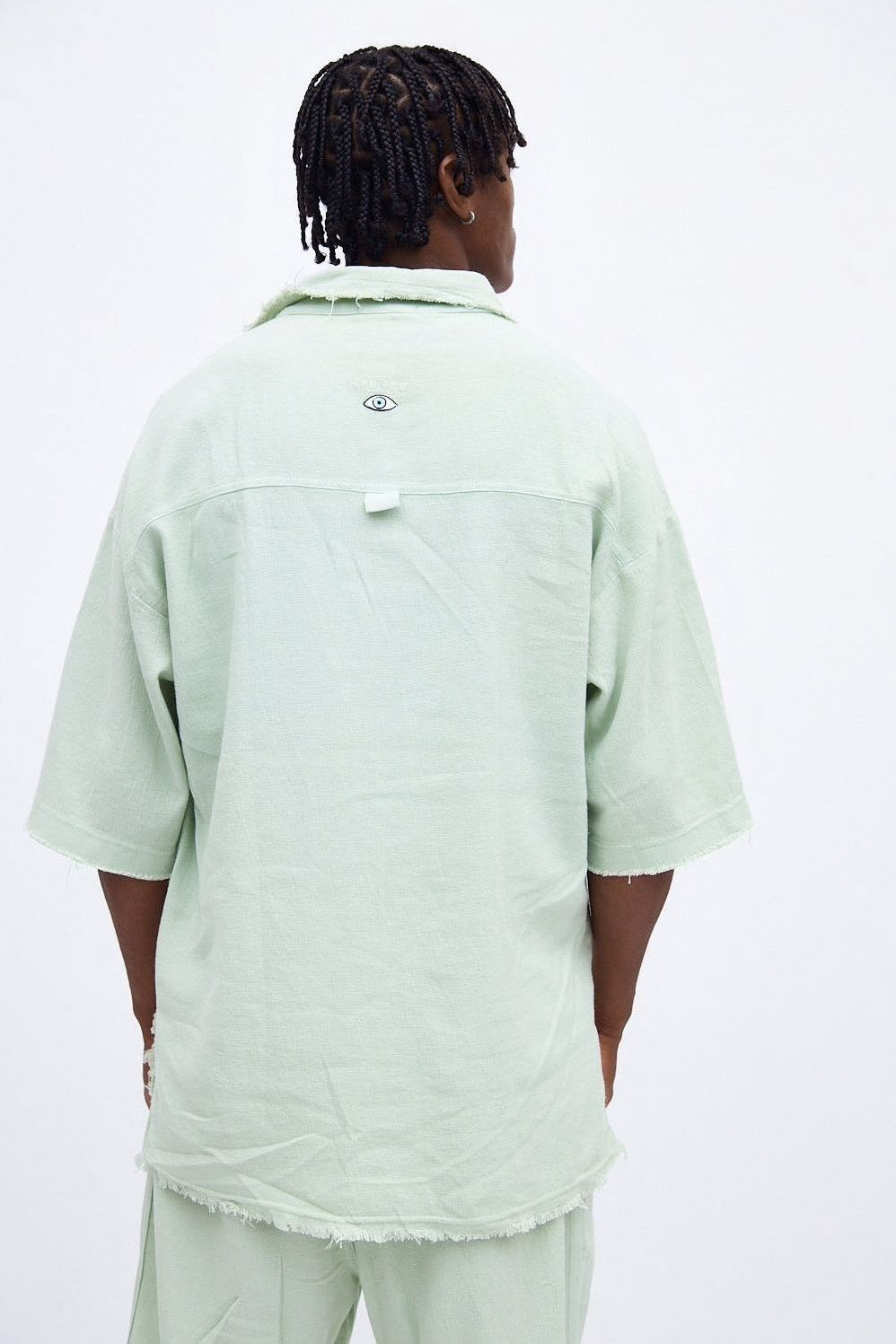 Canvas Short-Sleeve Button-Up Shirt - Apple Green