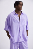 Canvas Short-Sleeve Button-Up Shirt - Lilac
