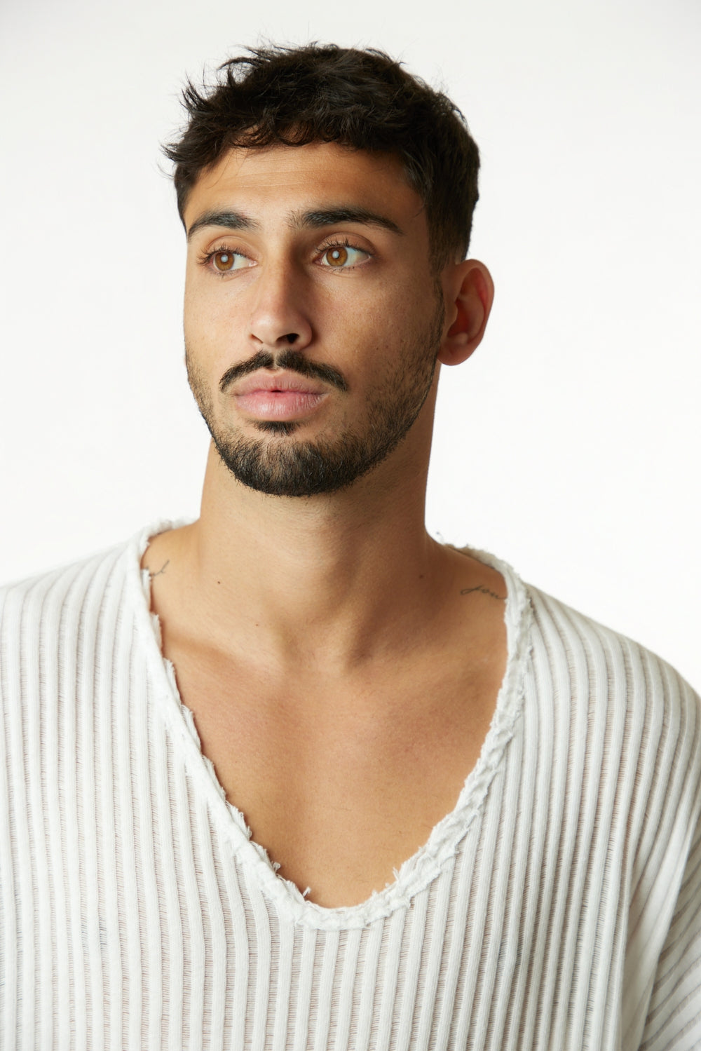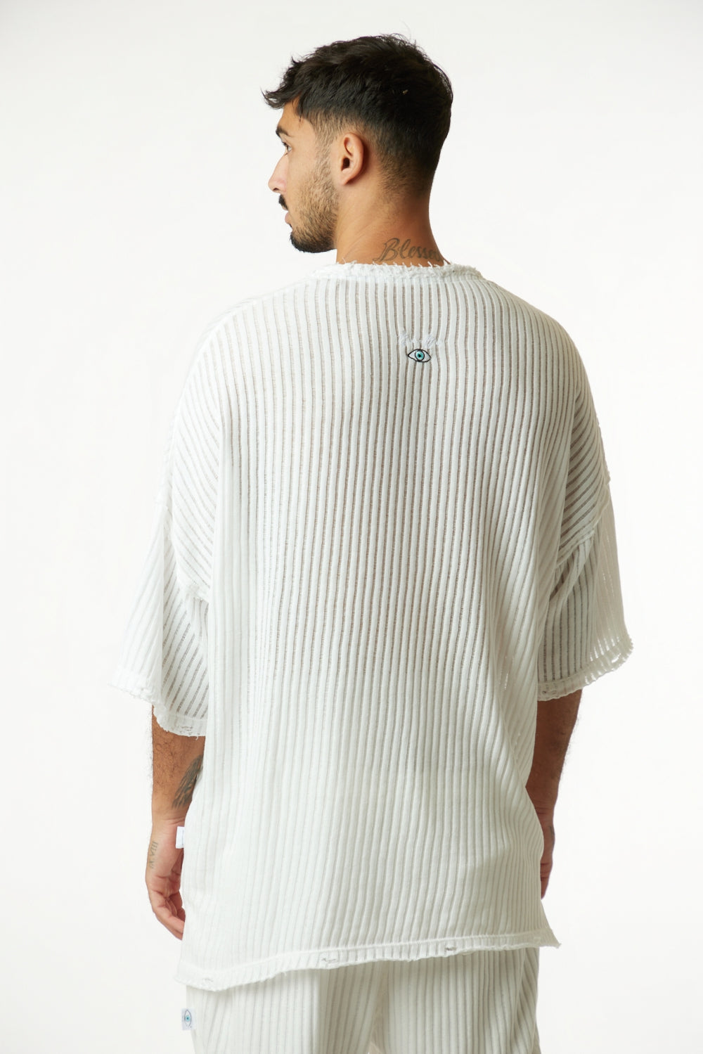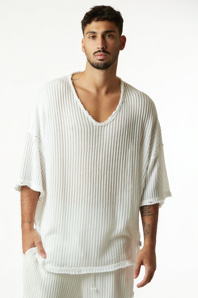 STRIPED KNIT SHIRT – CREAM WHITE