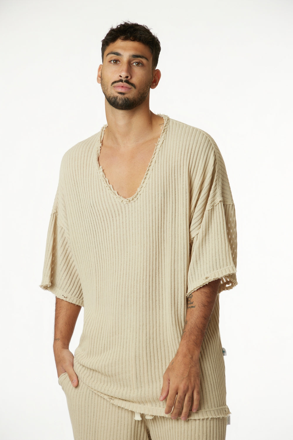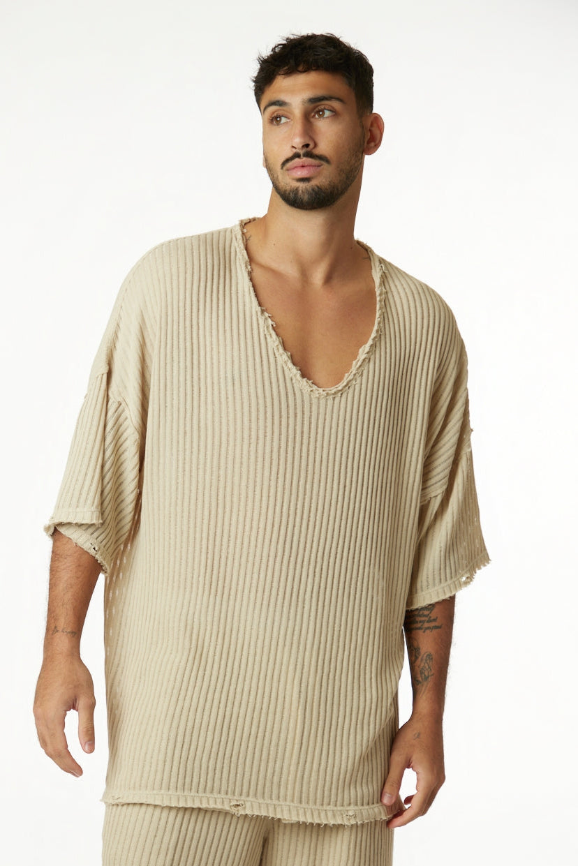 STRIPED KNIT SHIRT – STONE