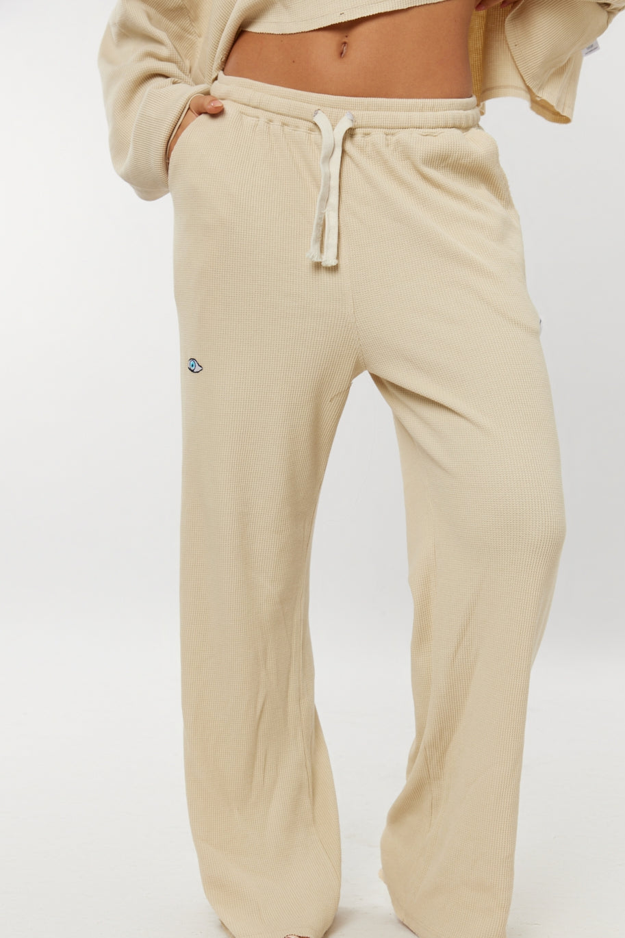 Waffle Flared Pants - Beige