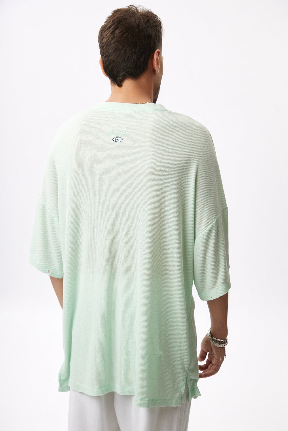 Men’s short-sleeve shirt made from ribbed fabric with a fine stripe texture, extra soft,