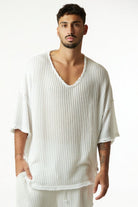 STRIPED KNIT SHIRT – CREAM WHITE (SIZE)